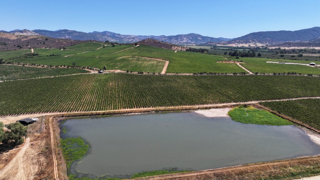 En materia hídrica, la propiedad cuenta con 70 acciones del Canal Melozal, equivalentes a 70 litros por segundo, además de un tranque acumulador de 49.000 m³, otorgando seguridad y estabilidad de riego durante la temporada.